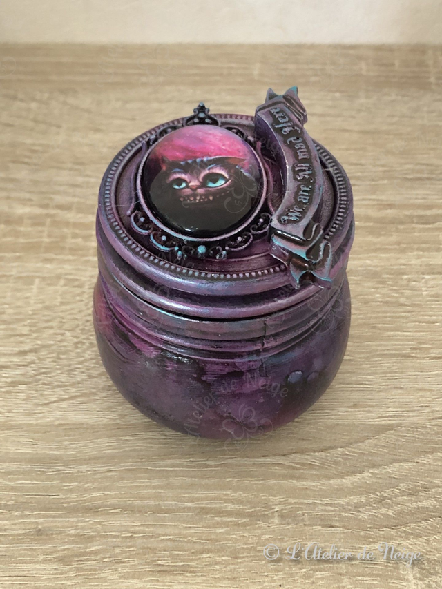 Matériaux : Pot en verre, décors en résine, verre et métal