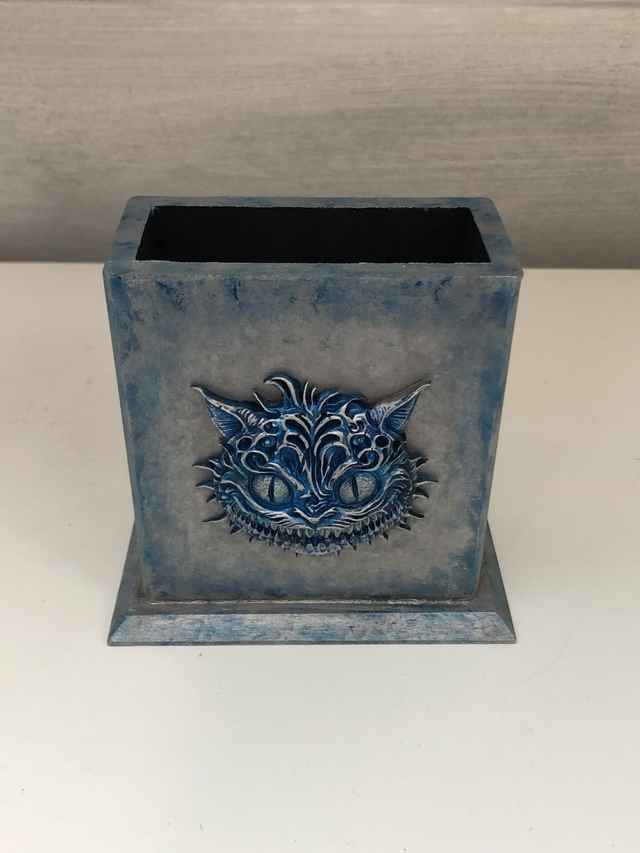 Dimensions : 11, 5 cm (hauteur), 8 cm (longueur du pot), 12 cm (longueur de la base), 3,4 cm (largeur du pot), 7 cm (largeur de la base), 0.8 cm (épaisseur du bois).
