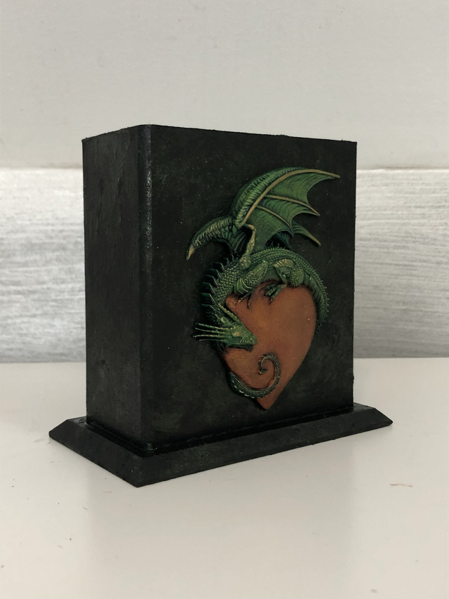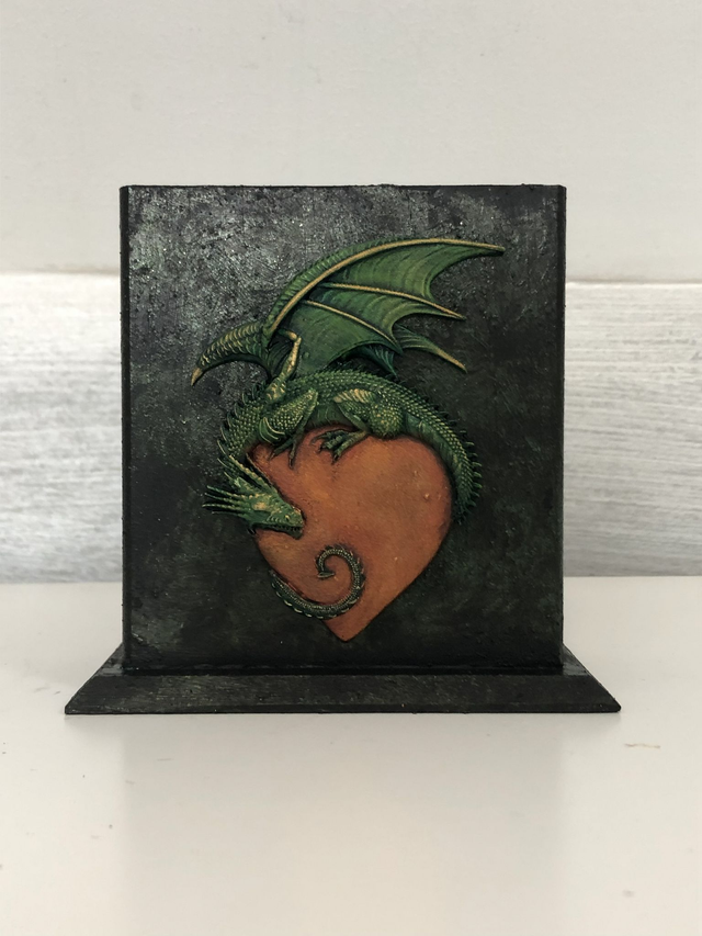 Description : Création entièrement peinte à la main à l'aide de peintures acryliques et de cires. Les décors sont coulés dans des moules en silicone avec de la résine polyuréthane.