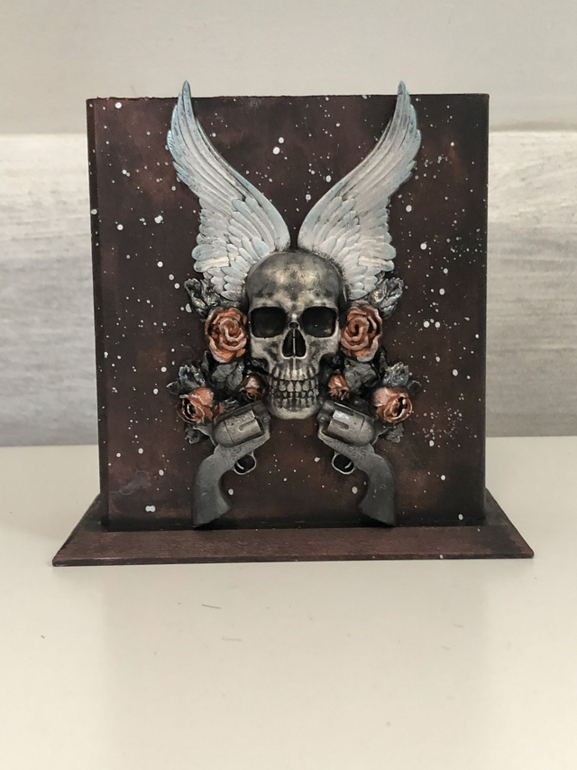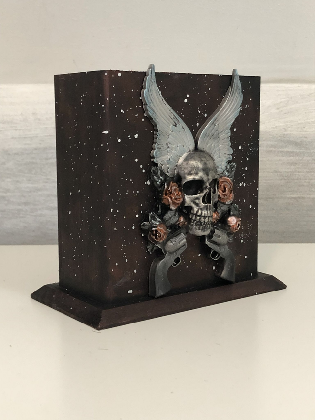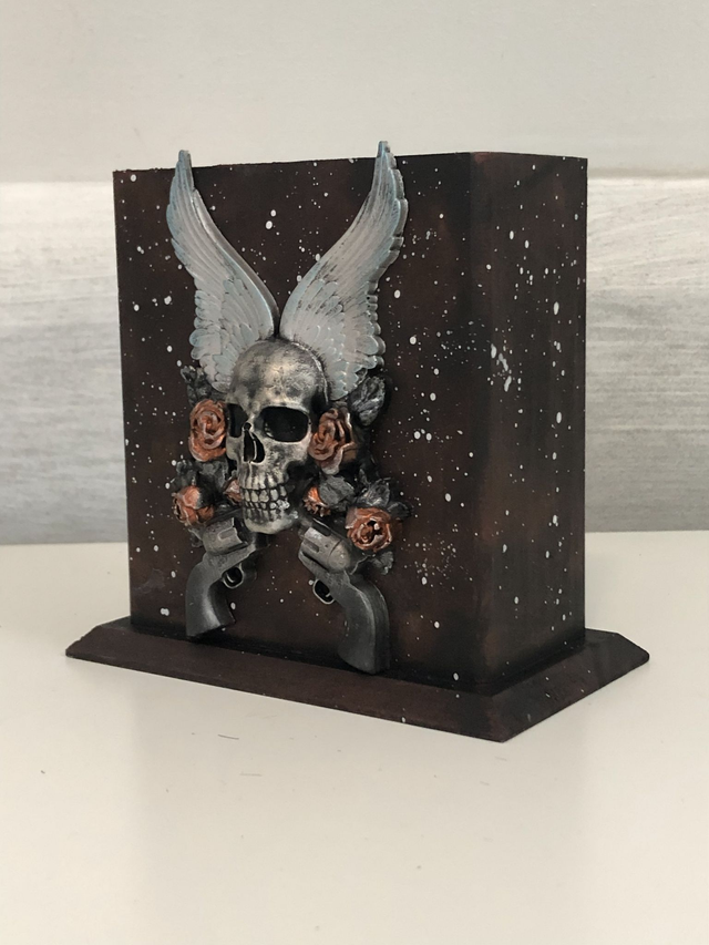 Description : Création entièrement peinte à la main à l'aide de peintures acryliques et de cires. Les décors sont coulés dans des moules en silicone avec de la résine polyuréthane.